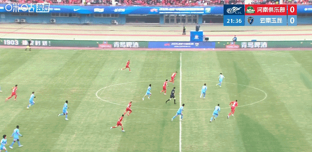 第30分钟,玉昆后防张宸梁停球失误送礼,古斯塔沃断球直塞,姆布拉前插突入禁区小角度推射破门!河南队主场1比0领先!